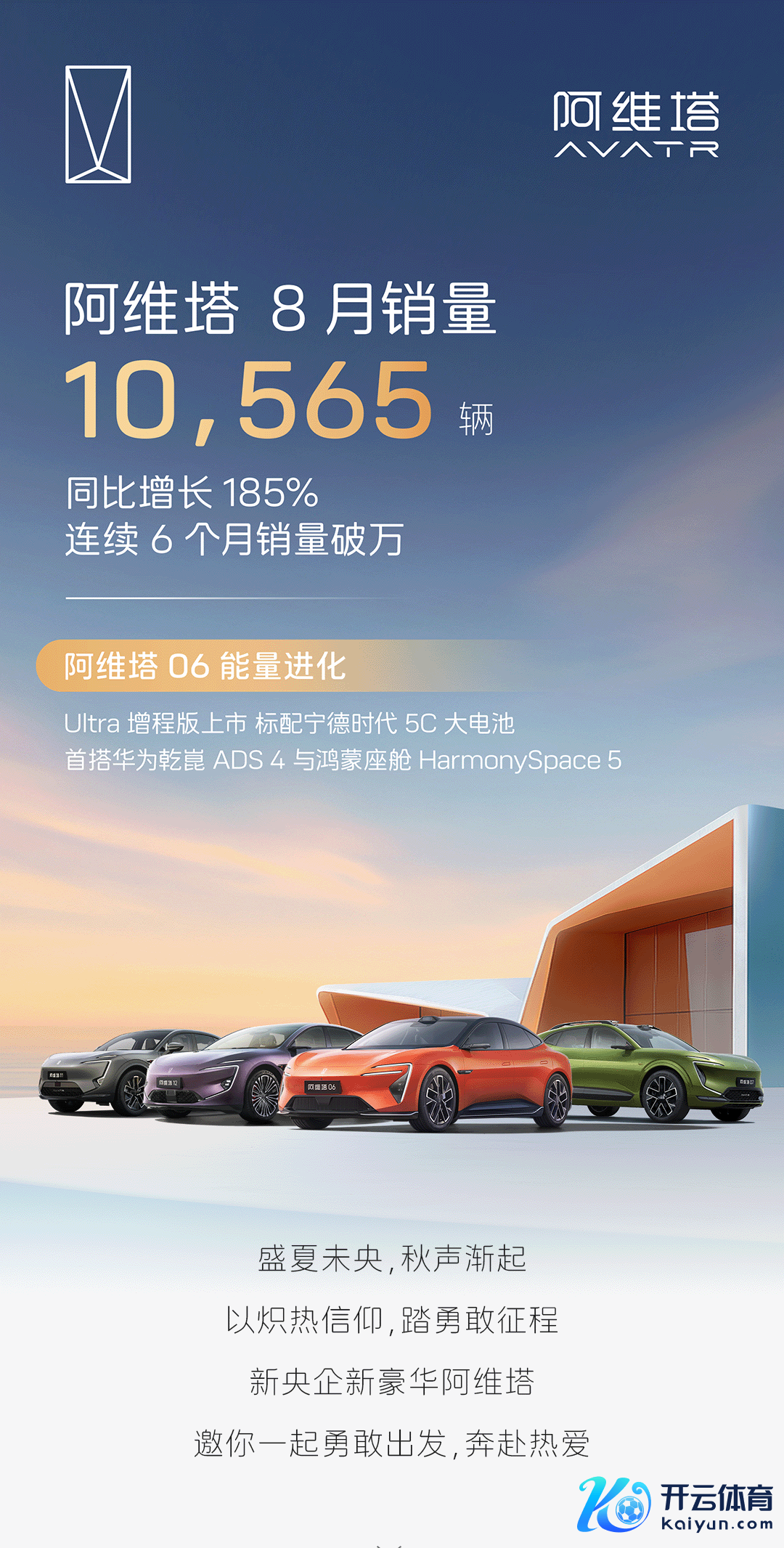阿维塔:8月销量10565辆万博manbext体育官网娱乐网,同比增长185%阿维塔:8月销量10565辆,同比增长185%