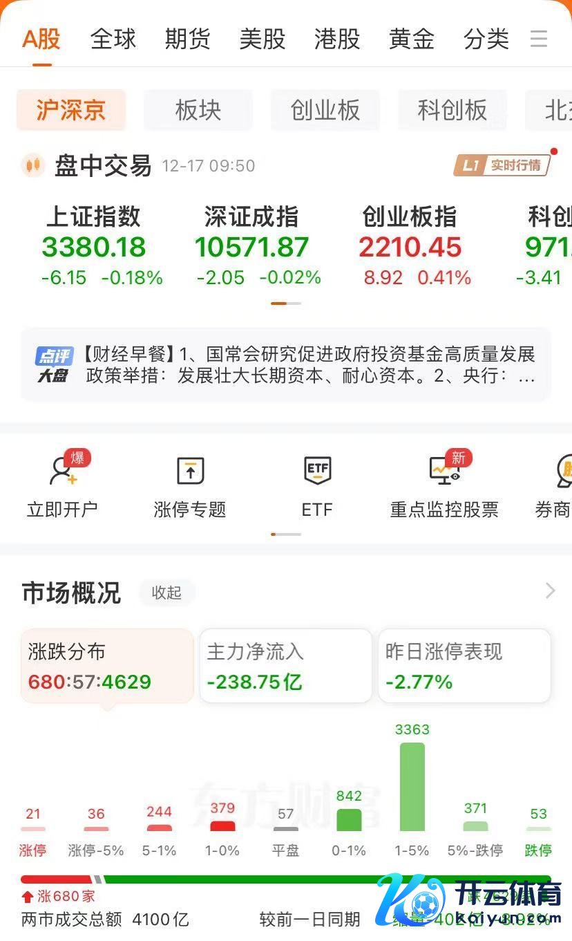 12月17日周二,限制发稿,A股三大指数轰动,创业板涨0.4%。5G通讯、新动力车、科技领涨;传媒、房地产、消耗领跌。