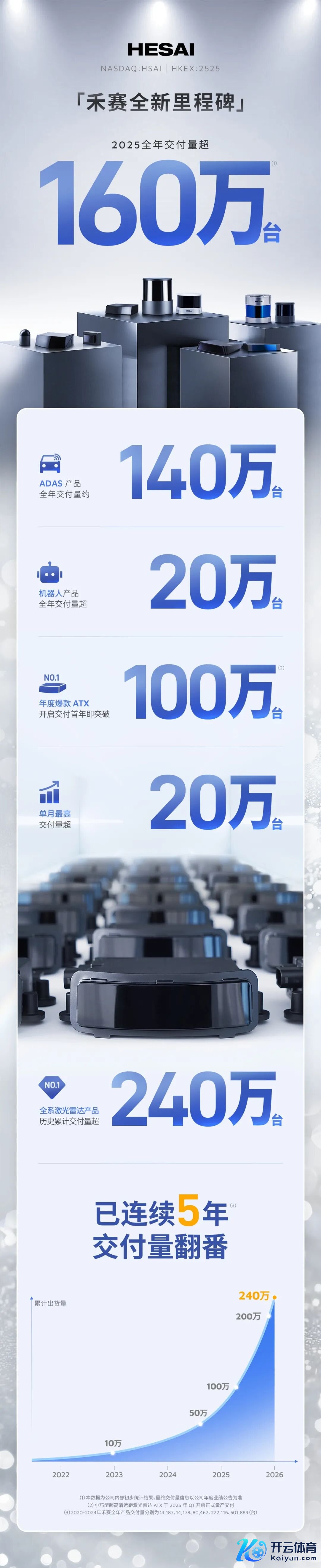禾赛激光雷达2025全年录用量超160万台禾赛激光雷达2025全年录用量超160万台