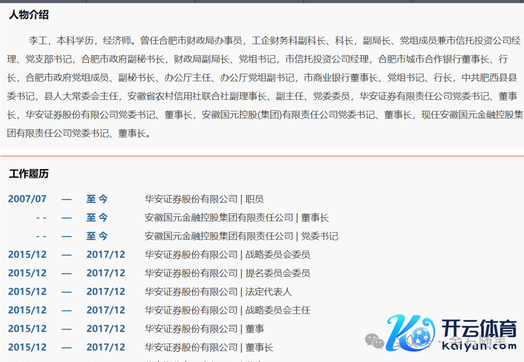 说明公开贵寓,李工曾任职 党委布告、董事长,2017年调任国元金控党委布告、董事长,而国元金控旗下有多家金融平台,包括国元证券、国元相信、国元保障和国元投资等。