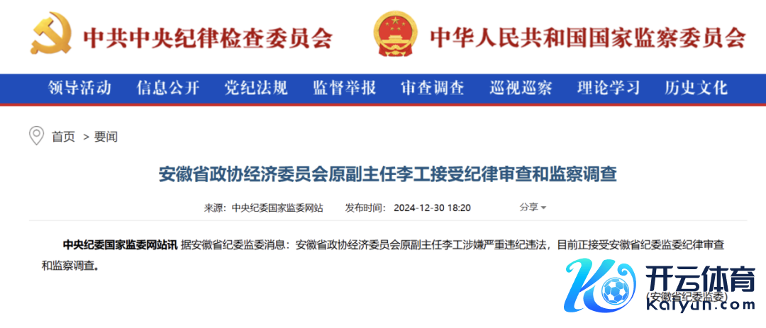 2024月12月31日,在2025年前夕万博manbext体育官网app娱乐,担任过两家券商的前董事长李工被查。12月30日,中央纪委国度监委官网通报: 安徽省政协经济委员会原副主任李工 涉嫌严重违章违法,当今正收受安徽省纪委监委次第审查和监察看望。
