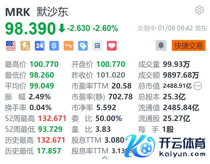 格隆汇1月8日|默沙东(MRK.US)跌2.6%,报98.39好意思元。音书面上,Truist Securities称,2024年生物制药行业在并购方面令东说念主失望,该行业需要更大/更多的并购来去智力复苏。Truist将默沙东公司的评级从“买入”下调至“捏有”,观点价从130好意思元下调至110好意思元。