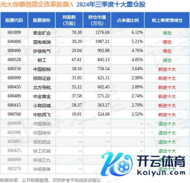 光大保德信国企改革股票A为股票型基金,笔据最新一期基金季报知道,该基金钞票竖立:股票占净值比84.86%,无债券类钞票,现款占净值比16.39%。基金十大重仓股如下: