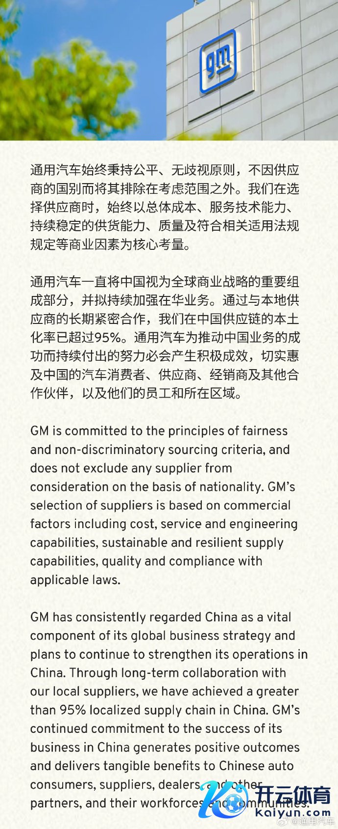 通用汽车:公司在中国供应链的原土化率已跳动95%通用汽车:公司在中国供应链的原土化率已跳动95%