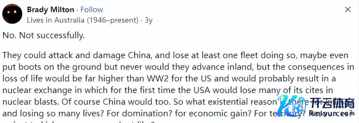 有位好意思国小伙伴在国际最大的问答平台Quora上问了这样一个问题:“如果好意思国破裂了中国的海上防地,收效入侵中国,我们该何如叮嘱?”看起来,好意思国这哥们儿是忘了,当今的中国仍是是个名副其实的核大国,跟中国开战,说真话,好意思国也偶然能占到什么低廉。