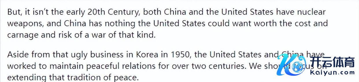 这但是当今,不像20世纪初,中国和好意思国都领有核兵器。在这种情况下,中国根本没啥好意思国念念要的东西,打这场仗根本不值,付出这样大的代价来搞大屠杀,冒这个风险,的确没必要。