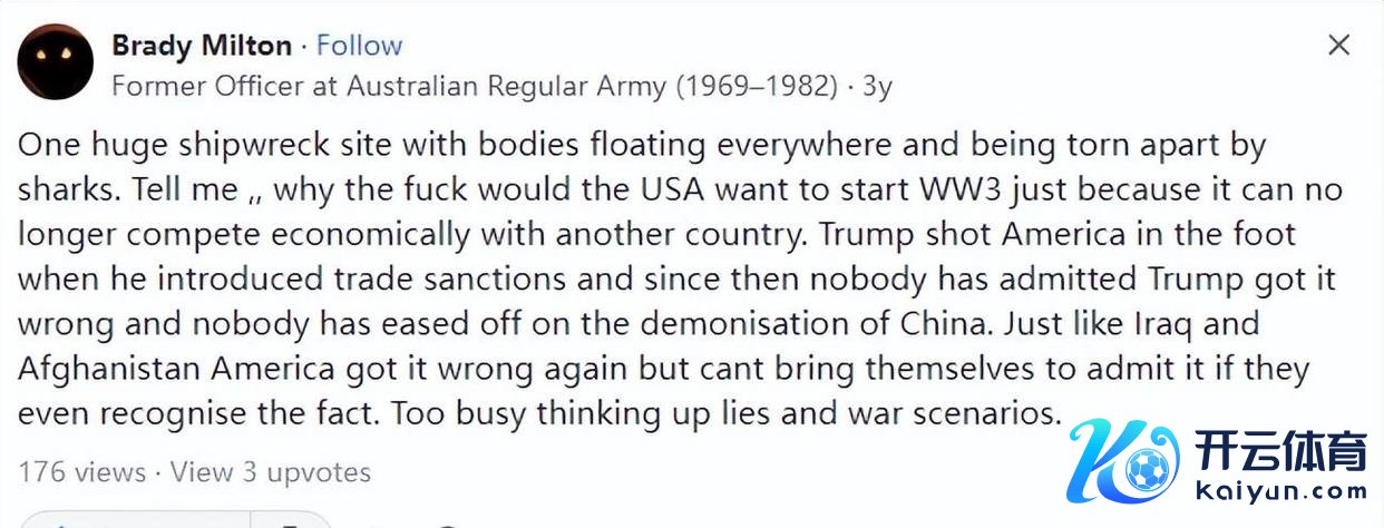 接着有网友补充说:念念象一下,海下面全是千里船,尸体满地漂,鲨鱼在何处撕咬,竟然个惨烈的步地。你说,为什么好意思国会为了根本没法在经济上跟其他国度竞争而念念要脱手呢?当特朗普开动对外扩充买卖制裁时,各人都惊怖了。