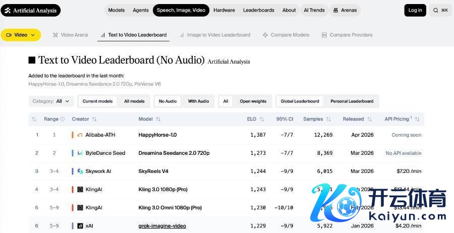 此前,该视频模子HappyHorse-1.0匿名(未标注厂商)登顶视频榜单多项测评。据泰斗AI评测平台Artificial Analysis AI Video Arena名次榜,HappyHorse-1.0以更高的Elo分数压过字节向上旗下Seedance 2.0、快手旗下可灵AI、Google Veo 3 Fast等视频模子,一举成为榜首。