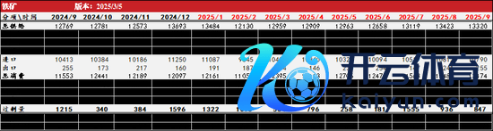 钢厂:钢厂入口矿总库存减3万吨,厂库赓续减67万吨,海漂+口岸减63万吨;入口矿可用天数环比减1日至21天