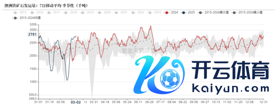 路透口径:2025年3月4日,路透大家铁矿(除中国大陆外)7日转移平均发货量4912千吨,周环比增2.3%,同比增7.8%。澳洲7日转移平均发货量2781千吨,周环比增41.8%,同比增11.9%;巴西7日转移平均发货量1234千吨,周环比增64.2%,同比增9.8%。