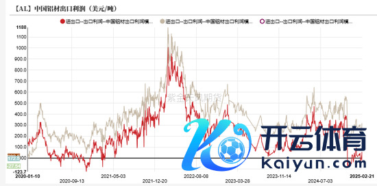 收支口方面,在现时表里均衡的驱动下,电解铝入口窗口抓续保抓关闭现象,现时电解铝入口利润仅为-2143元/吨;铝材出口方面,现时铝箔、铝板带出口利润已基本确立至水面上方,铝型材出口利润仍处于损失现象。
