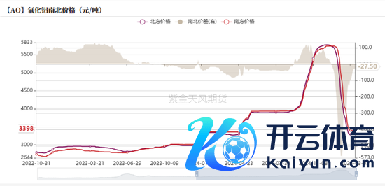 上周国内氧化铝价钱举座大幅下行,其中朔方产区均价为3370元/吨,南边产区均价为3398元/吨,价钱举座处于南高北低的情形